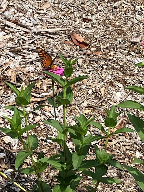 Update (August 12, 2024)- You can't even make this stuff up. Today was the first day of school and after picking my daughter up at the bus, we passed by our zinnias at the bottom of our driveway and just guess what butterfly was there... yes indeed, the Gulf Fritillary. I literally couldn't believe it. I study the butterflies in our yard every day and have had yet to see this one. I started trying to get close enough to confirm and shouting, "God is so amazing! He's speaking to me right now! I was just writing about this butterfly!!" The kids were hot and thought I was crazy and that we should go inside for snacks, but there was God, meeting me once again. Here's the proof from my wildly blurry iPhone photo :)