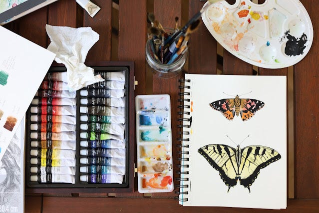 A homemade bookmark from my son lays tucked inside from last night when I marked the next butterfly I wanted to paint. Bright orange with black lines, it’s boldness had caught my eye: the Gulf Fritillary.
