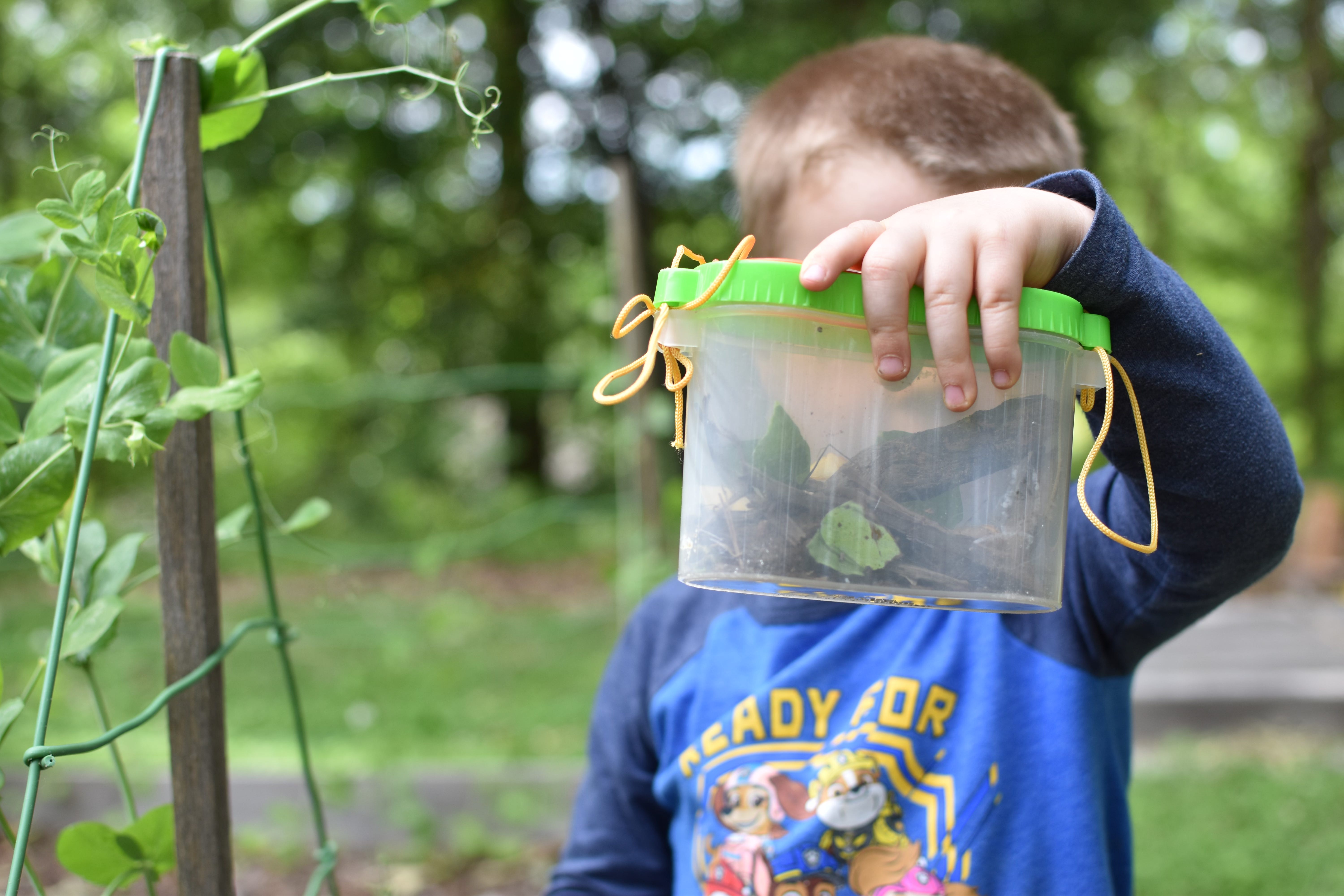 And so it came to be that the aptly named Sheldon spent two months living in our bug box enjoying bits of cucumber, apple, and pea leaves. Except for the week we accidentally left the lid of the box off and he went missing. Very devastating. Upon returning home from errands several days later, I noticed a familiar looking brown sphere on the garage door as it slowly lifted. Sure enough, it was Sheldon. Thankfully too, for my son had grown quite fond of him. What I didn’t realize was how fond I’d become of him as well.